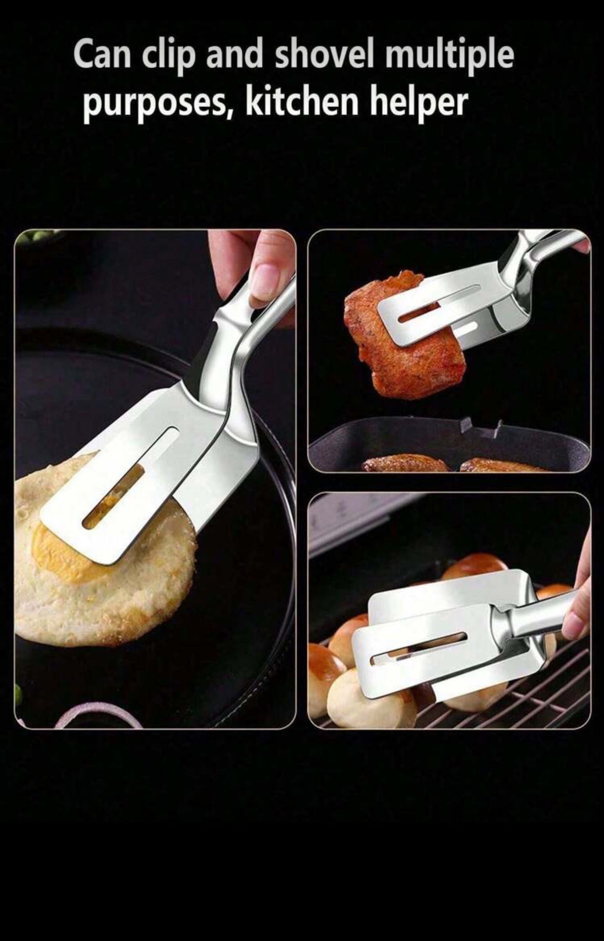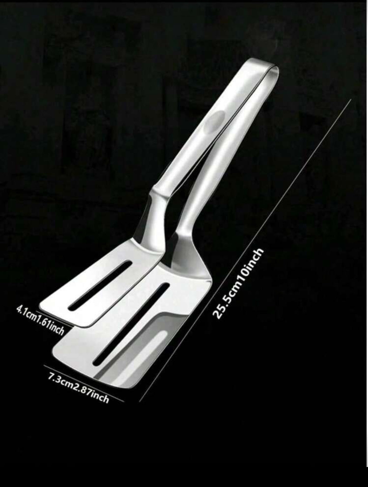 stainless steel 2-in-1 spatula and food tongs.