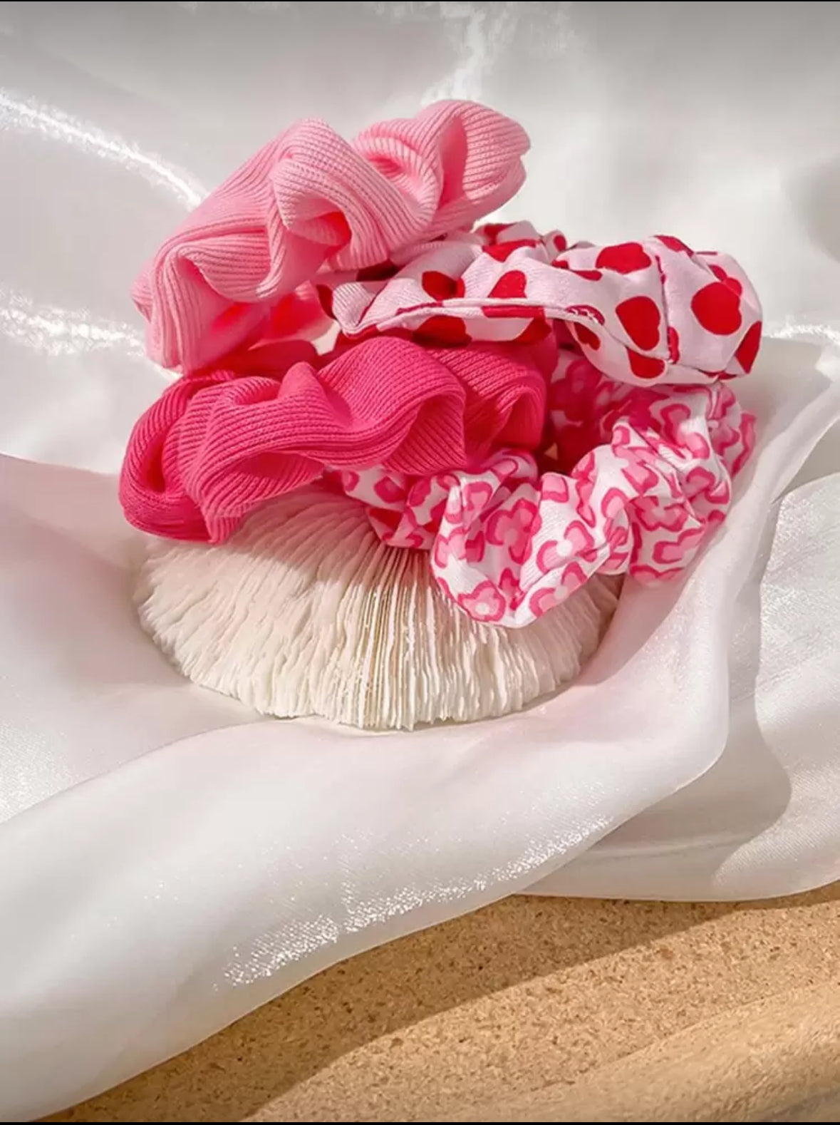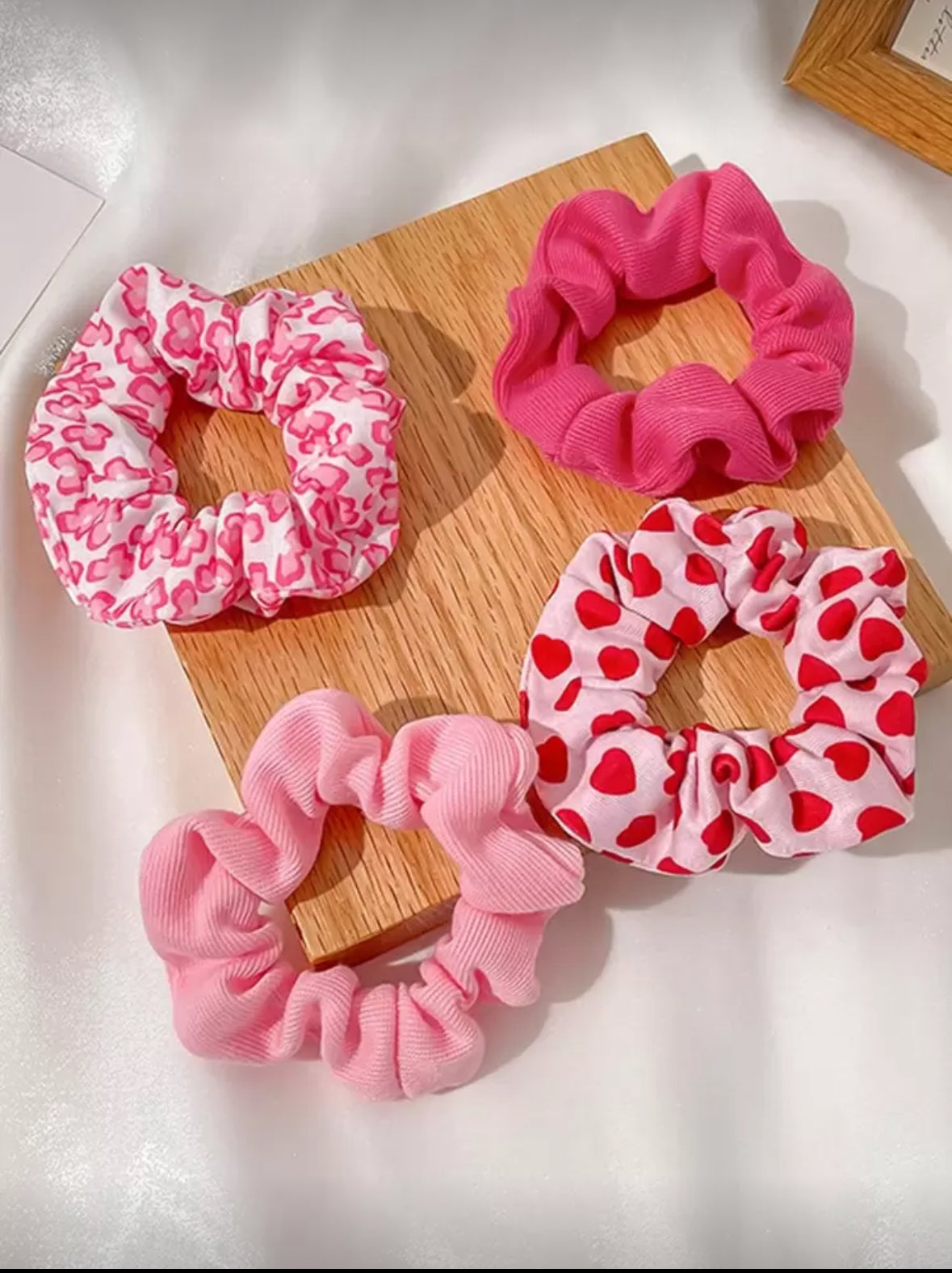 4pcs Y2K Style Girl's Pink Cute Valentine's Heart Knitted Hair Scrunchies, Stretchy Elastic Hair Ties Hair Accessories For Everyday, Casual, Party, Commuting, Holiday Valentines Scrunchy Hair Ties Ponytail Head Accessories Elastic Band