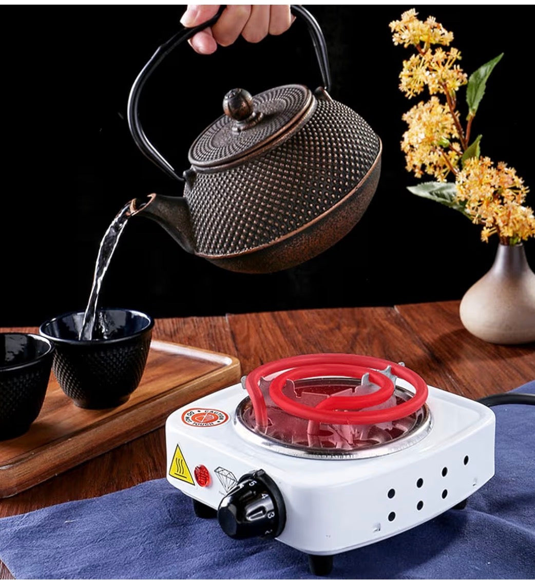 a portable electric single-burner hot plate, commonly used for cooking or heating in small spaces, offices, or for traveling.