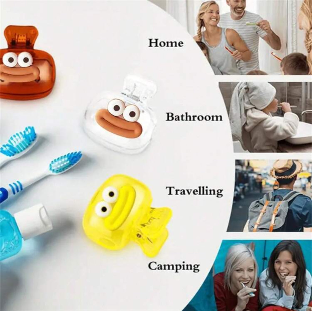 a 6Pcs travel toothbrush head cover intended to keep a toothbrush head clean and hygienic.